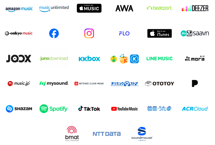 iTunes、amazon MP3、beatport、junodownload、LINE MUSIC、mora、music.jp、他